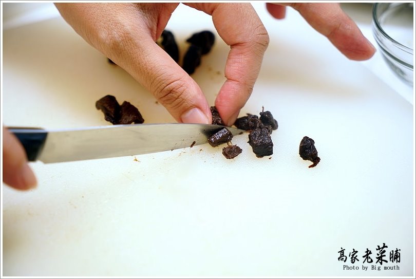 ▼接下來我們要準備炒豆干用的老菜脯,此時可以再把剛剛沖洗好的老菜脯切細一點,拌炒時更好入味喔!