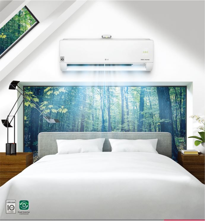 台灣氣候炎熱潮濕,加上近年來國人健康意識抬頭,尤其對於空汙議題更加關注,對於選購空調的要求除了強勁冷流以及節能省電以外,更期望能同時兼顧室內空氣品質。台灣LG電子觀察到消費者需求,推出最新款DUALCOOL系列空調豪華清淨機種,搭載LG Air Purifying System「空氣淨化系統」,擁有獨立式空氣清淨機的頂級淨化空氣功能,結合三大空氣淨化新技術,PM1.0感應器自動偵測室內微粒粉塵、負離子產生器主動釋放超過500萬個負離子幫助淨化空氣,以及微塵濾網過濾系統來清潔室內空氣髒汙,同時搭配四色燈號與數值智慧雙重顯示,讓消費者能透過室內機面板輕鬆掌握室內空氣品質。全新上市的DUALCOOL雙迴轉變頻空調豪華清淨機種同樣配備LG特有的雙迴轉變頻壓縮機,並獲得CSPF能效一級認證,同時具備速冷、節能功效,一機體驗冷氣與空氣清淨機的雙重優勢。