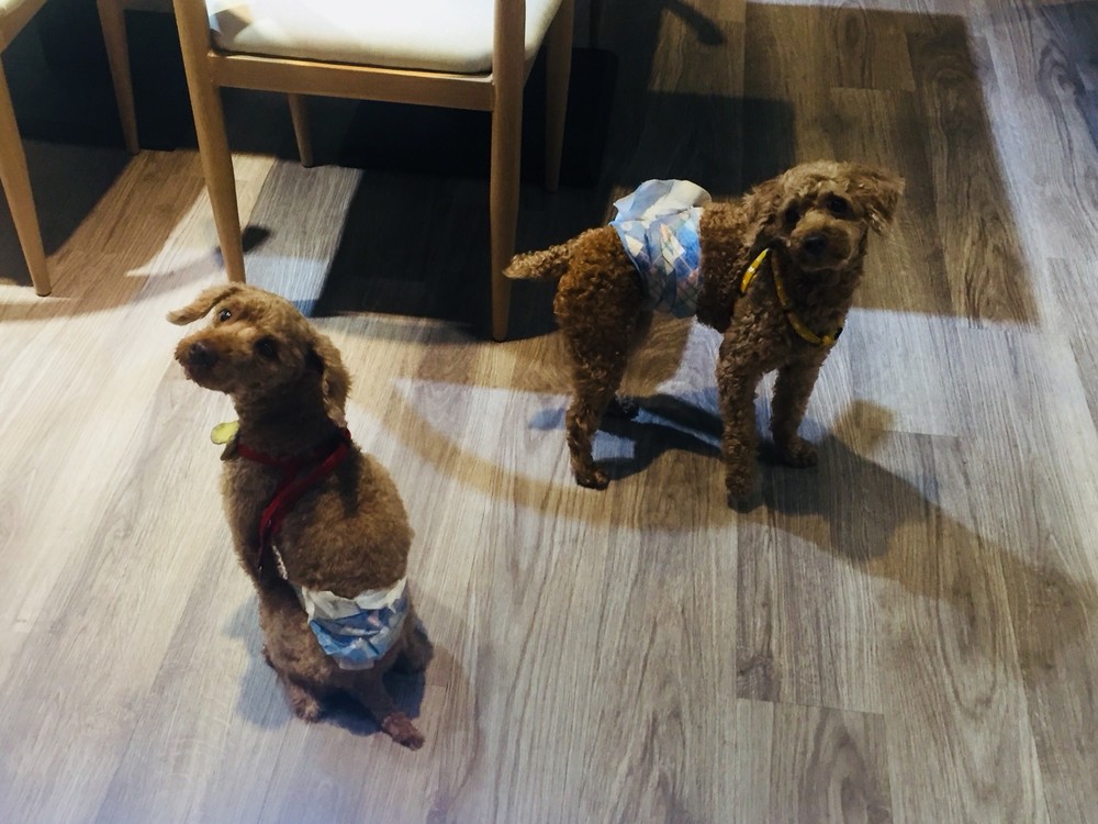 店內裝潢走簡約風格,以人跟寵物為客,店內寬敞乾淨,進到店裡頭立馬就有3隻貴賓出現,這3隻都是收容的
