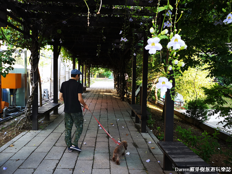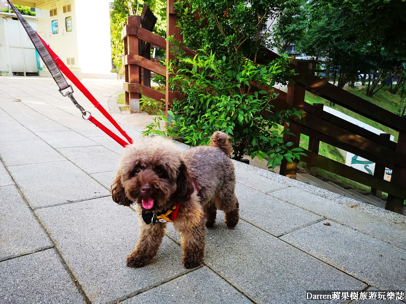 豆喜屋寵物餐廳鄰近公園,居住在寵物旅館的狗狗,店家也會使用兩條牽繩避免狗狗脫繩,帶狗狗出去走走散步
