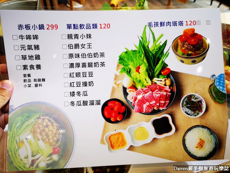 豆喜家寵物餐廳的菜單menu,餐點有狗狗可以吃的毛孩鮮肉塔塔很受歡迎!!如果想要點建議先打電話預約