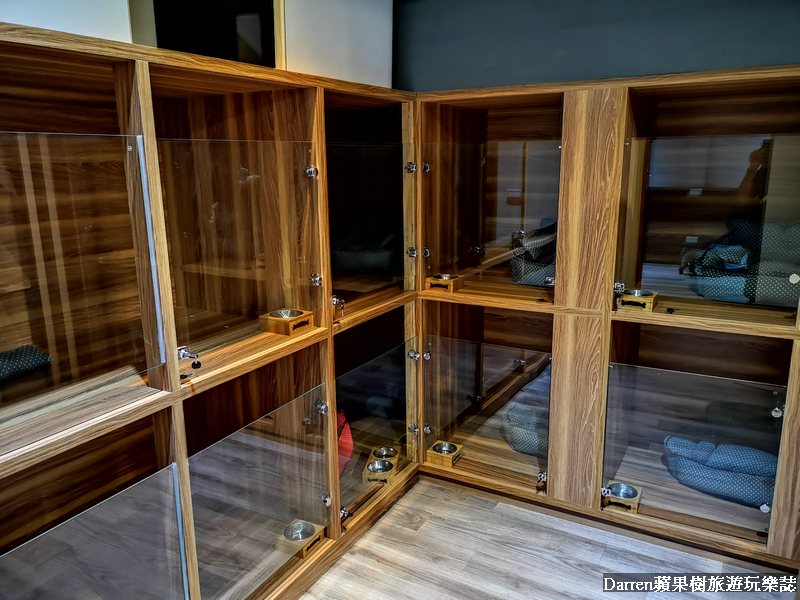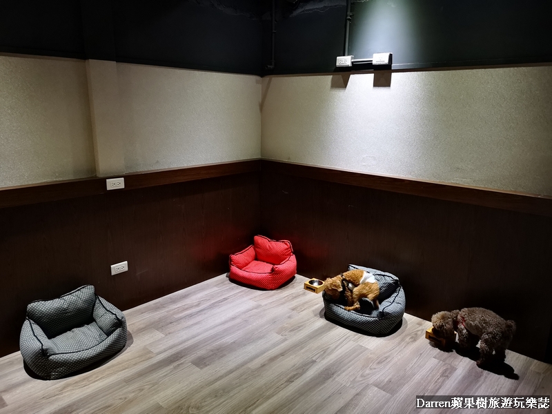 豆喜家寵物餐廳在2樓規劃有寵物旅館和寵物美容,寵物旅館會遠端提供給客人寵物的畫面,有隔間小旅館