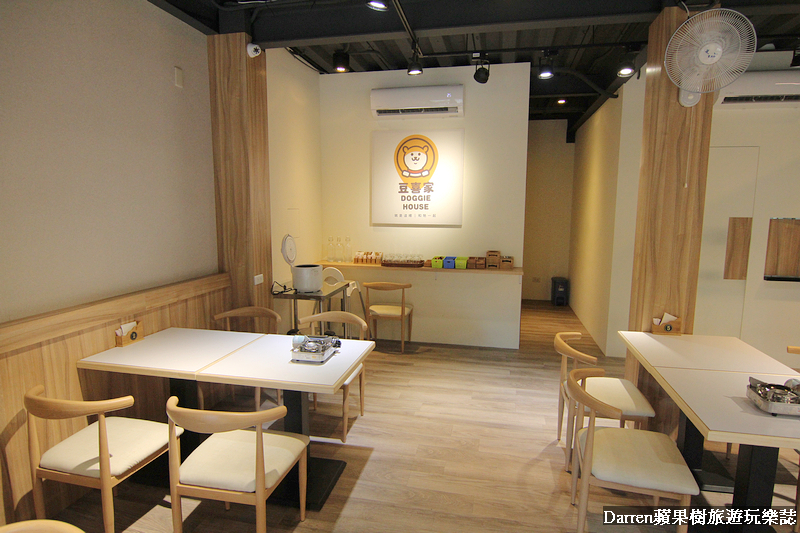 豆喜家剛開幕不久,所有的桌椅裝潢都非常新,簡單乾淨沒有過多的擺設,就是很適合狗狗在裡頭玩樂的環境