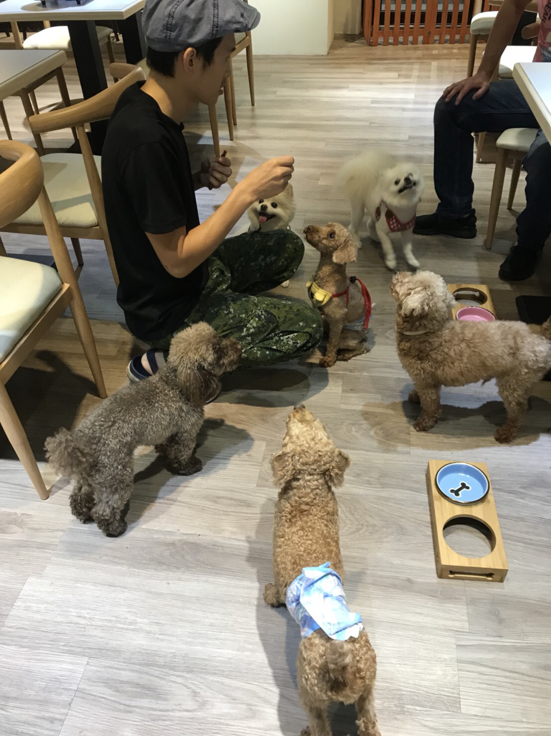 這天來到豆喜家寵物餐廳,狗狗都會在你的身邊繞來繞去很熱情,可惜我那天沒帶我家狗狗拿鐵來不然可以一起玩