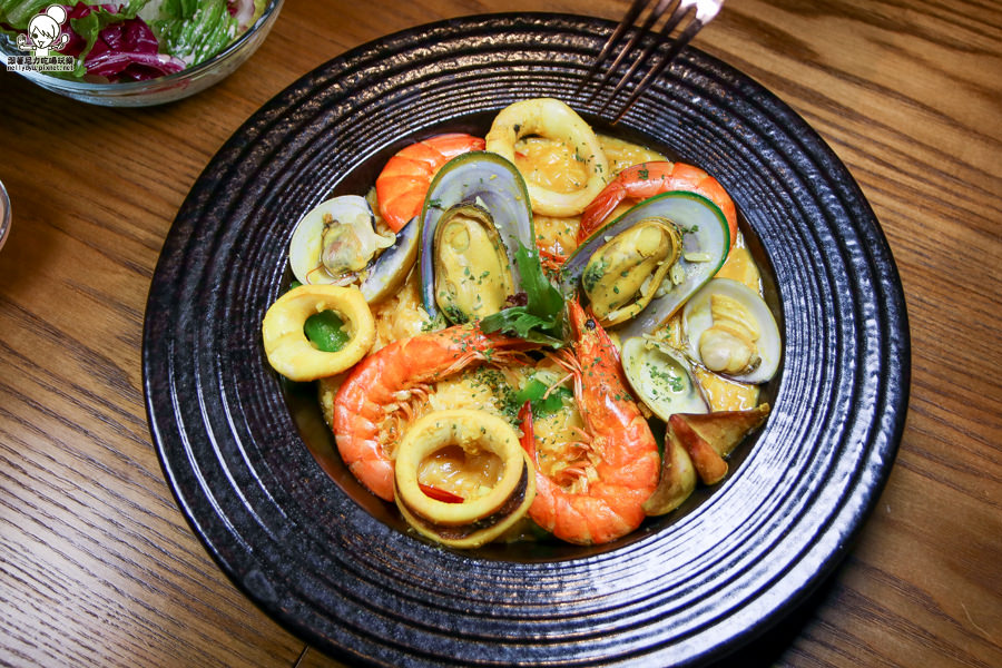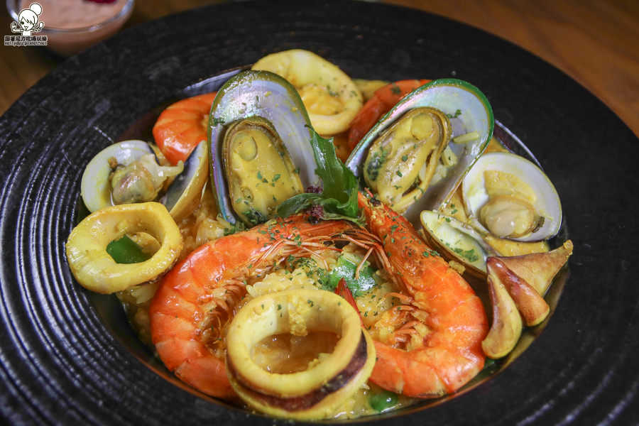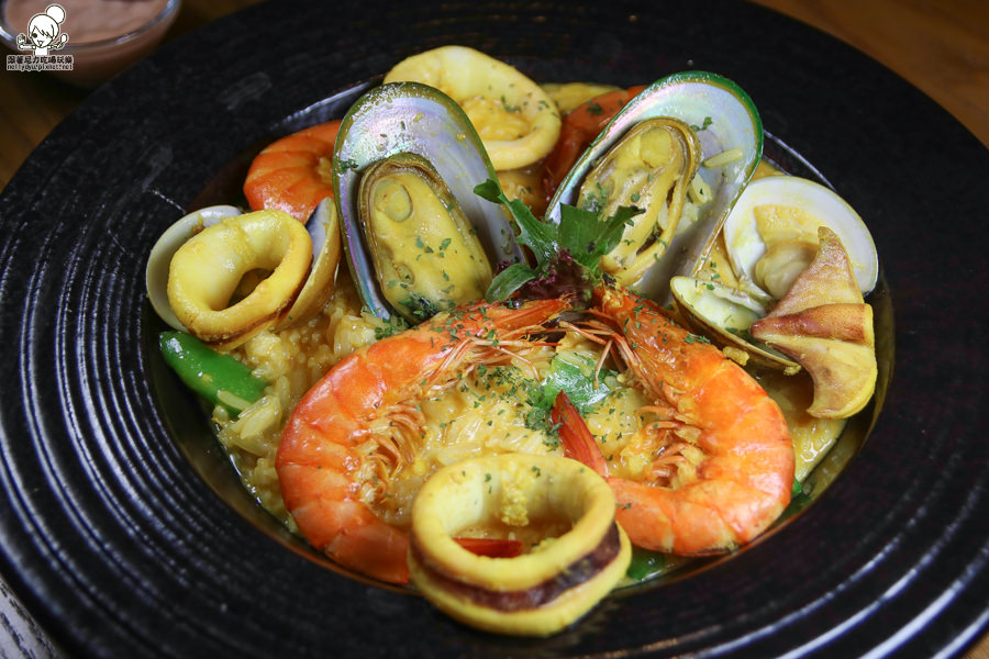 帶有滿滿海洋鮮味的西班牙海鮮燉飯,燉飯使用的泰國長米