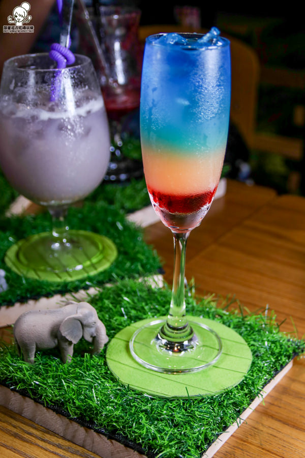 在擺盤上也別出創意,使用草地跟可愛扭蛋公仔,跟叢林風的環境結合