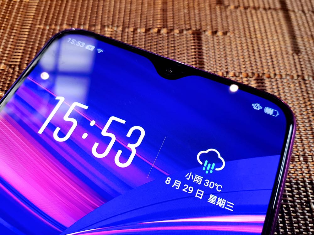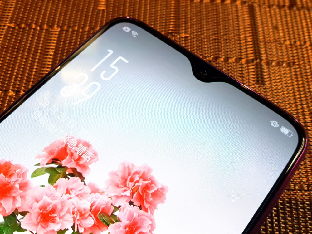 正面則是 OPPO R17 這次創新採用的水滴螢幕,設計靈感據說是來自荷葉邊即將落下的水滴,再透過工藝的革新,實現那高達 91.5% 的螢幕佔比。