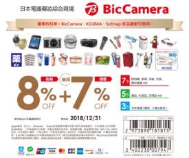 2018 最新版Bic Camera優惠券、折價券下載-Bic Camera是大家來日本買電器最棒的地方,而且現在有2018最新版的BicCamera優惠券、Bic Camera 折價券可以使用,直接出示手機就能享有折扣,算下來真的是省很多 。