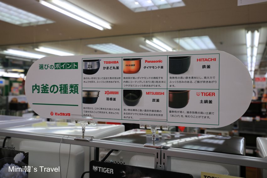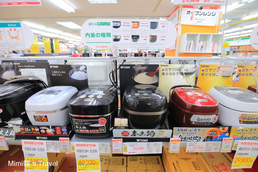 如果說日本的米飯很好吃應該沒人會反對啦吼?所以現在也越來越多人會來日本買電子鍋(雖然我覺得台灣大同電鍋就很硬霸),其中像是TIGER、日立HITACHI、Panasonics的機種都很熱門,各家使用的內釜都不太一樣,可以現場請店員幫妳做介紹。但⋯並不是說買了這個回去就變神廚,怎麼煮都好吃喲!主要還是要看稻米本身的品質與水量的掌控。