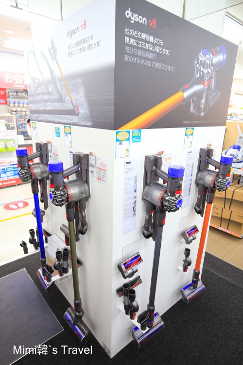 吸力超強,而且號稱永不減弱的Dyson吸塵器也是大家到日本必買的電器,Bic Camera有很齊全的款式可以讓大家試用,不過有網友說日本Dyson跟台灣型號一樣,但配件會有些不同,我是沒有特別比較過,大家可以稍微注意。以最受歡迎的Dyson v8 fluffy來說,這次姊來大阪Bic Camera看售價是54,500日圓(約14,715台幣),而台灣網路價$20,999元,一台也是差了5,000元以上。