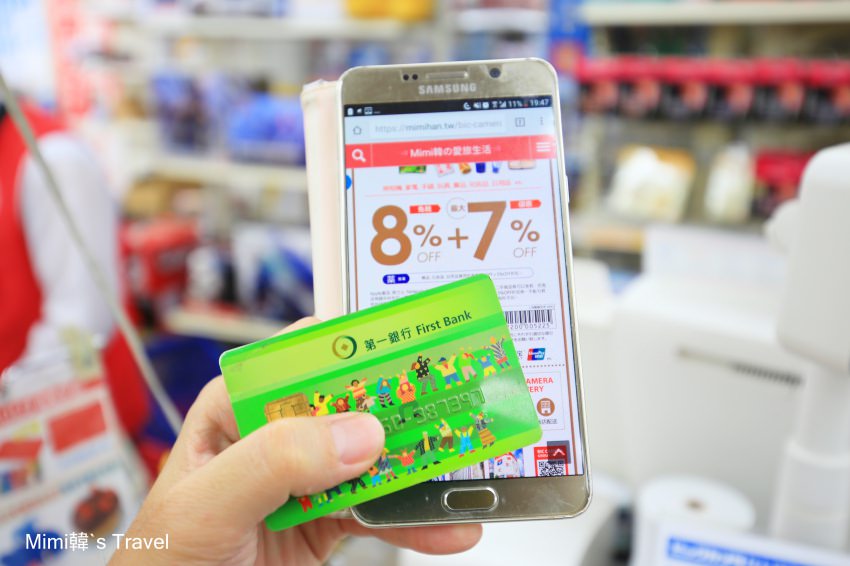 4・結帳走免稅櫃台出示護照(省8%稅金)、手機出示折價券(省7%)、金融卡付款(2%現金回饋)、免1.5%國外交易手續費。