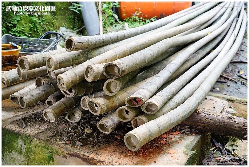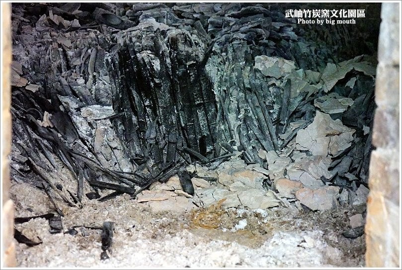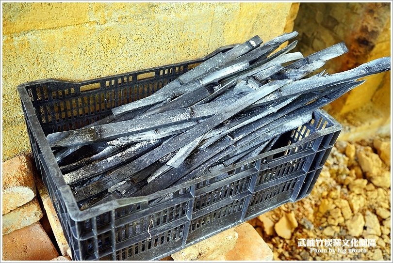 ▼原本竹子會排排站好,經過高溫燒製後就會呈現斜躺的姿勢,然後就會依照竹炭的上、中、下部位做最好的利用!