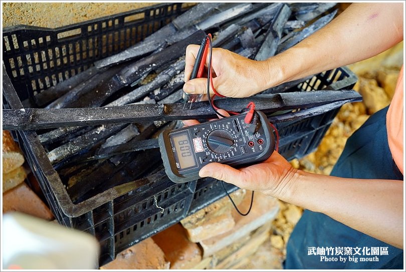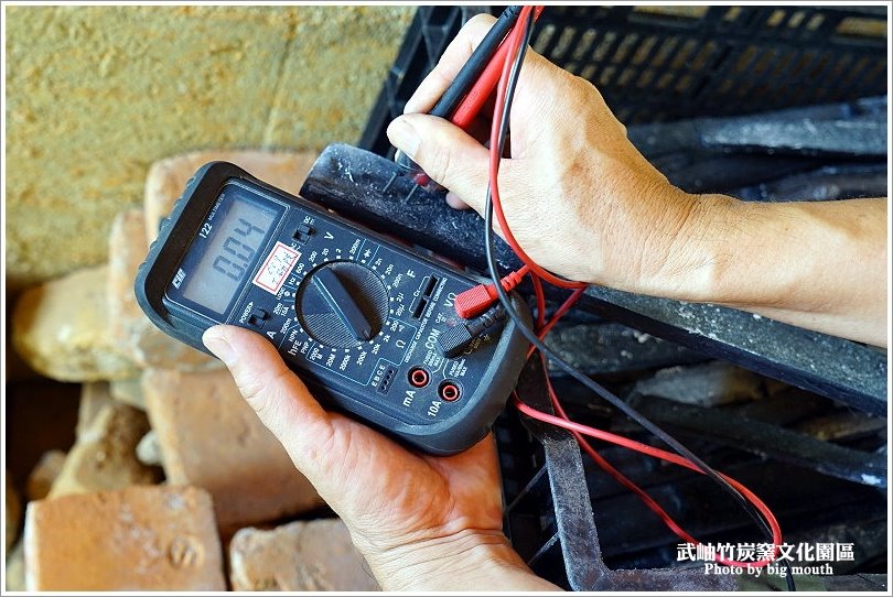 ▼每一塊竹炭都會經過儀器電錶來測試其精煉度,像是中下段通常用於煮飯或是飲水!