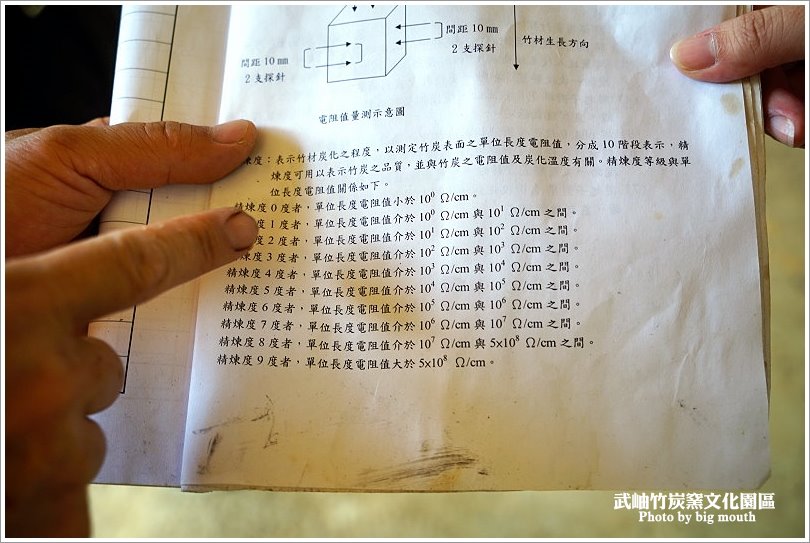 ▼這是精煉度就是使用測得的電阻值來評估,符合標準才能拿來製作成人體或是食用等級的竹炭!