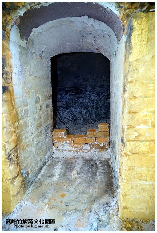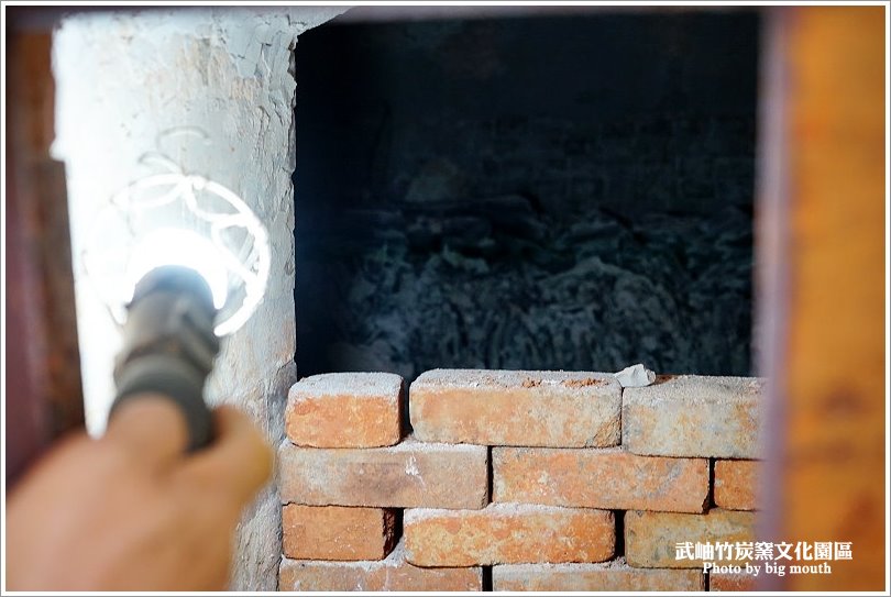 ▼將著慢慢將第二道窯門也打開囉~可以隱約看見竹炭就斜躺在裡面!