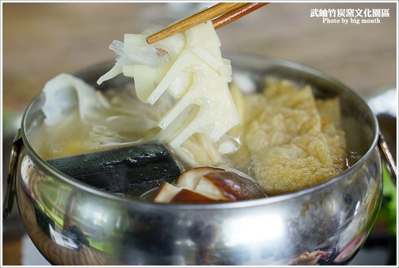 ▼火鍋裡頭可以看見竹炭放在裡頭一起烹煮,搭配各種鮮蔬配料,讓湯頭喝起來更加甘甜鮮美,清甜又順口!
