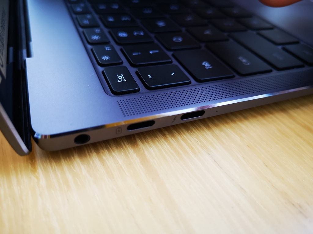 機身左側具有 3.5mm 耳機孔與兩組 USB Type C,其中有一個可以同時進行充電。