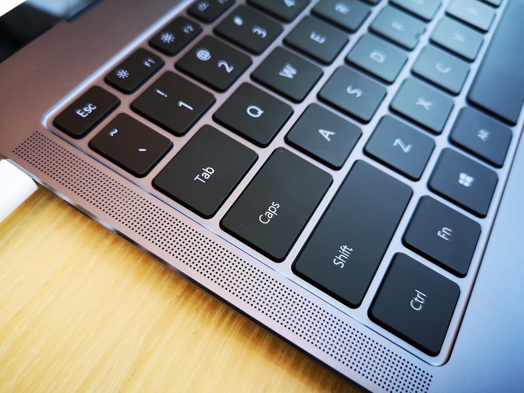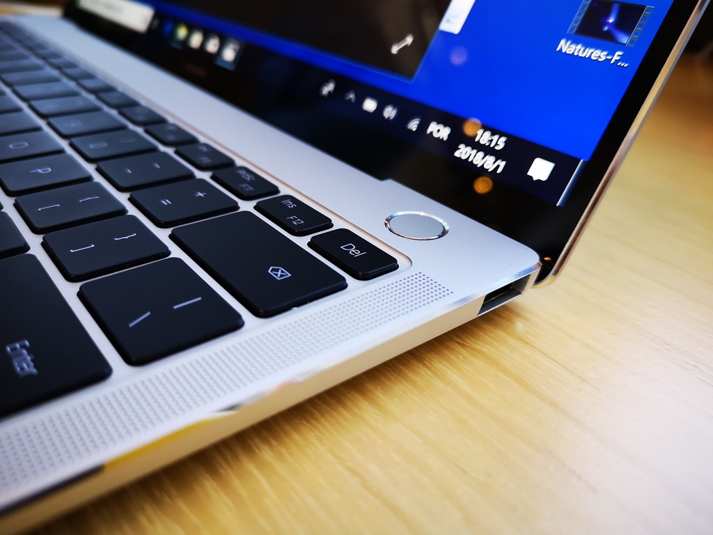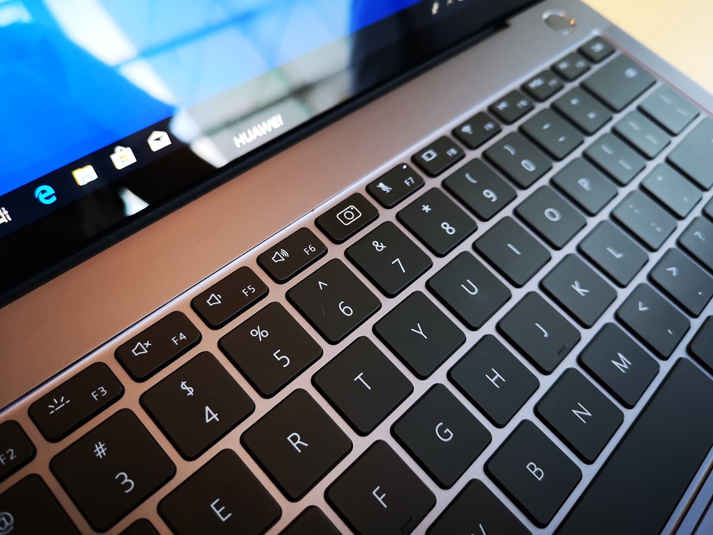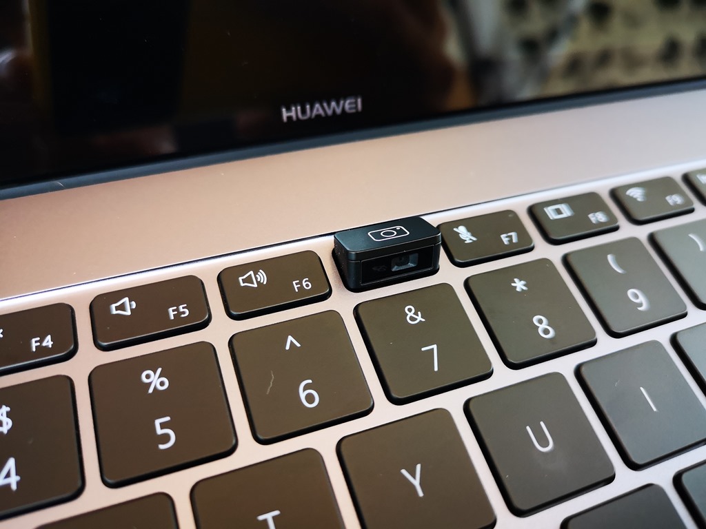MateBook X Pro 最有趣的莫過於在功能鍵中,設計的像是鍵盤的彈出式鏡頭,這樣的設計可說是絕無僅有,這樣的方式也是為了因應螢幕的極窄邊框所設計,讓螢幕占比更高。也就是在最小的面積下,你可以擁有最大的螢幕。