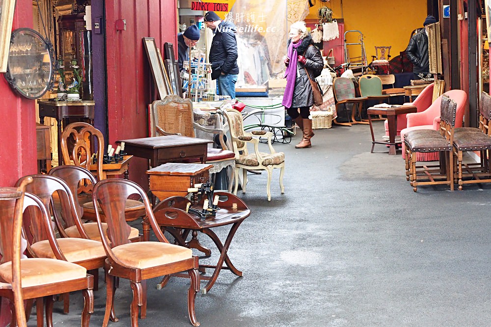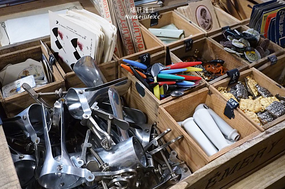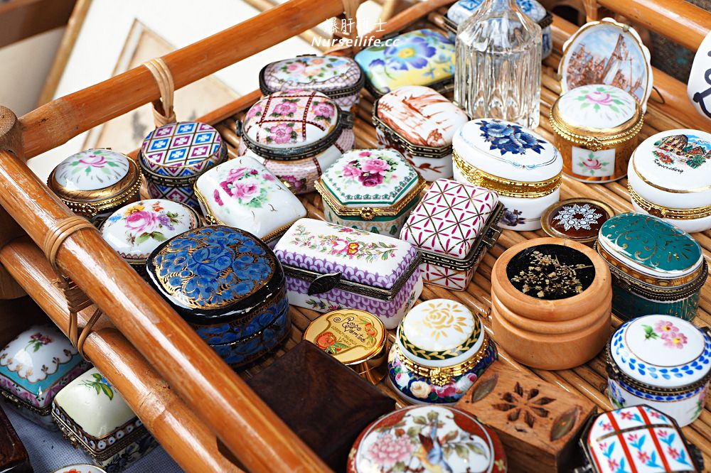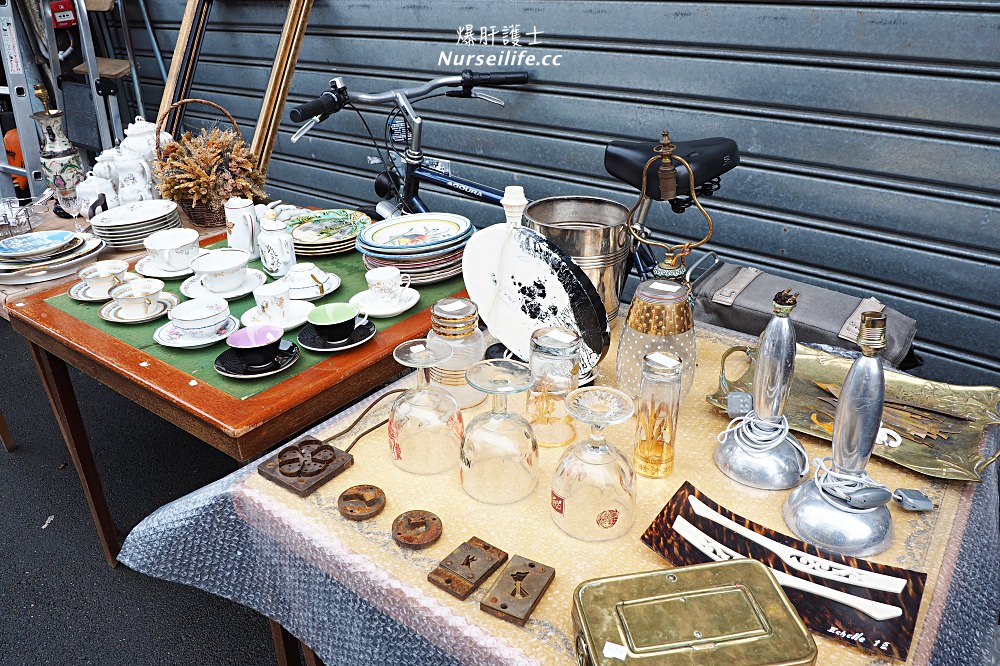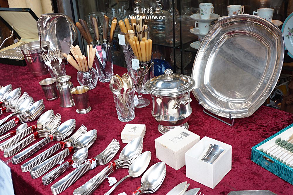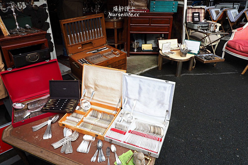 像朋友來到這裡,就買了一整組不錯的百年銀餐具,搭配餐點簡直就有中古世紀的豪華饗宴感,但對於整個市集來說,販賣的尺度真的是太廣了,從上百年的古餐具到近十年的童玩,還有精緻仕女愛用的香膏盒、瓶蓋、鈕釦甚至鐵奶罩,與其說爆肝來掏寶,不如說爆肝就是來飽足好奇心的。
