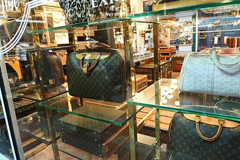 這裡也有不少名牌包店,但賣的不是現今的流行款,很多都是斷貨的古董級商品,當然價格也是很驚人的。