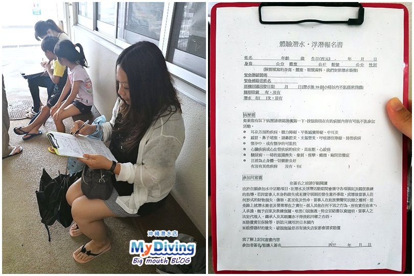 ▼一開始要先填寫健康檢查與申請書,確認身體狀況無誤才可以下水唷!潛水後18個小時內不能搭飛機,所以建議大家不要排回國前一天比較保險!另外也請大家留E-MAIL,等到一整天行程都結束後晚上就會收到當天所拍攝的照片,真是太有效率啦!