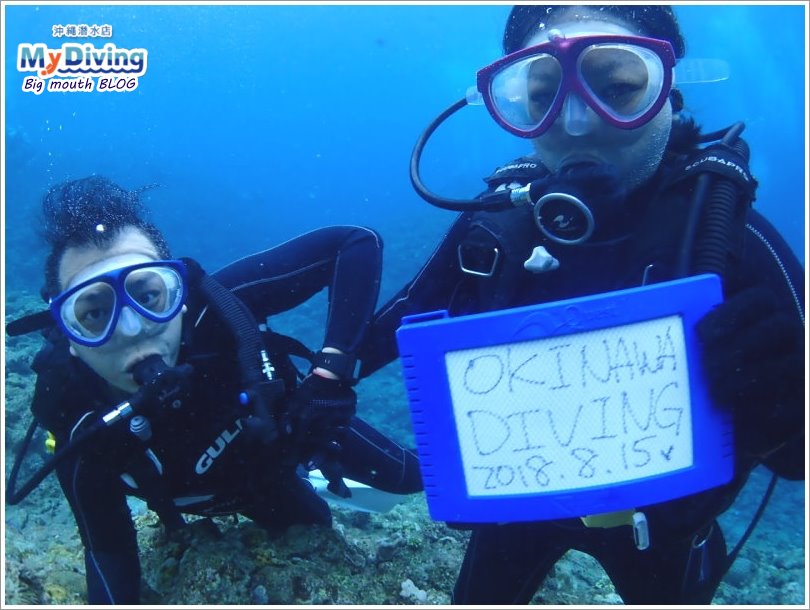 這次參加MyDiving的青之洞窟套裝方案真的讓我們玩得很開心,且他們家是5歲以上的健康人士可以參加浮潛活動,潛水則是要10歲以上才可以參加,連小朋友也可以享受美好的潛水體驗,真是太棒啦!而且只需要攜帶泳衣、毛巾就可以開心地玩耍,不僅國台語都會通,還有專人水中攝影拍照,潛水完就可以帶著滿滿回憶與照片回家啦!大口強烈推薦這輩子一定要找機會來沖繩的青之洞窟(藍洞)浮潛或潛水一次,體驗一下魚群在身旁悠遊的快感,還有感受夢幻又透亮的藍洞到底有多美!有興趣的朋友都可以加入他們的臉書、LINE或是官網預約詢問唷!