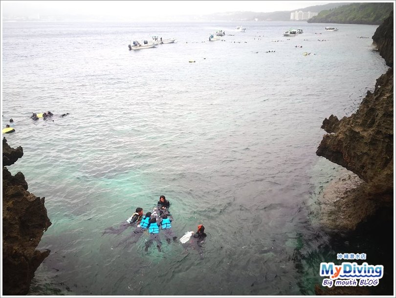 ▼這一區幾乎都是浮潛的地方,聽EMMA說要前往青之洞窟有三種方式,一種是浮潛過去,另一種是沿著礁壁走過去,最後一種則是搭船,感覺都好特別啊!一開始教練也會先帶我們在淺水區練習,等到我們適應了再帶到比較深的區域去浮潛!