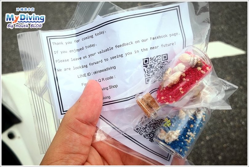▼最後還會送上沖繩星砂讓我們作紀念,看到這兩瓶星砂就會讓我們想起青之洞窟的美,還有滿滿的美好回憶!
