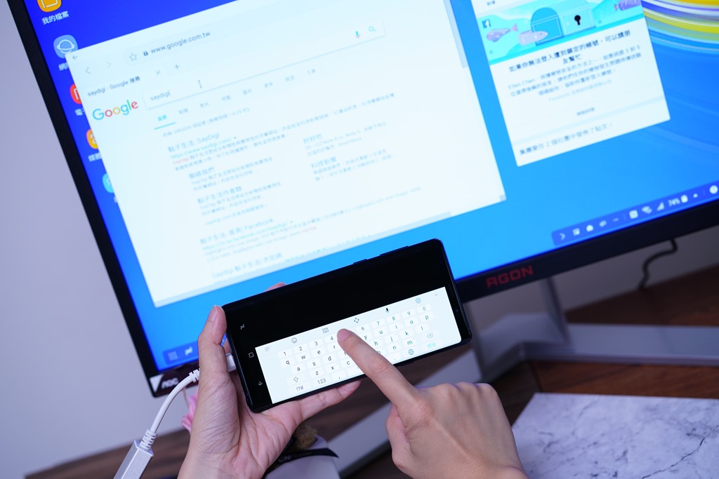 初次使用 DeX 時會有教學告訴使用者該如何透過手勢在 Note 9 上操作 DeX,在需要輸入文字時,原本變成觸控板的 Note 9 會跳出鍵盤,受惠於強大的處理器,一次開多個應用程式也不成問題。