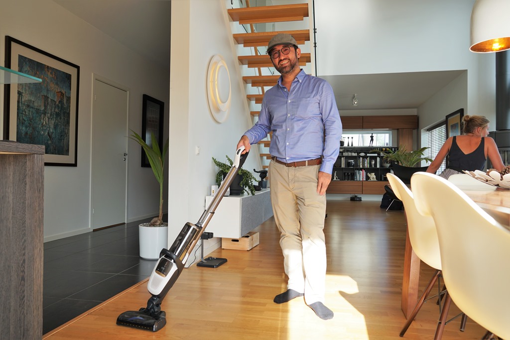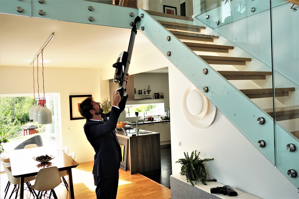 聊到伊萊克斯這次推出的 Pure F9,Pernilla 說明這產品從發想、中斷、重啟到推出,共歷時四年的時間,考量到都會住宅必須更有效應用,必須設計出一款用一台就能完成居家清潔的吸塵器。他們遇到的困難,也因為必須要達到電池續航與重量合宜的設計,最後才出現這款結合傳統臥式吸塵器清潔力、直立式吸塵器的操控性與手持吸塵器的輕巧與多功。在外觀上,結合白、灰與黑色的北歐重要色彩元素,與流線設計;功能上最重要元素就是結合各式吸塵器優點的 FlexLift 滑移設計。