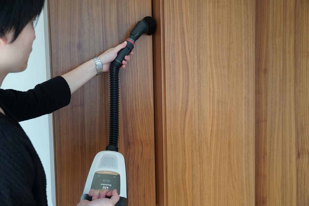 將手把降到最低並換上毛刷吸頭,就轉變成方便清潔沙發、床鋪與狹縫的吸塵器,更厲害的是吸塵其中的吸塵軟管,是內建在機身內部,直接拉出來後,可以清潔的範圍就更多了。