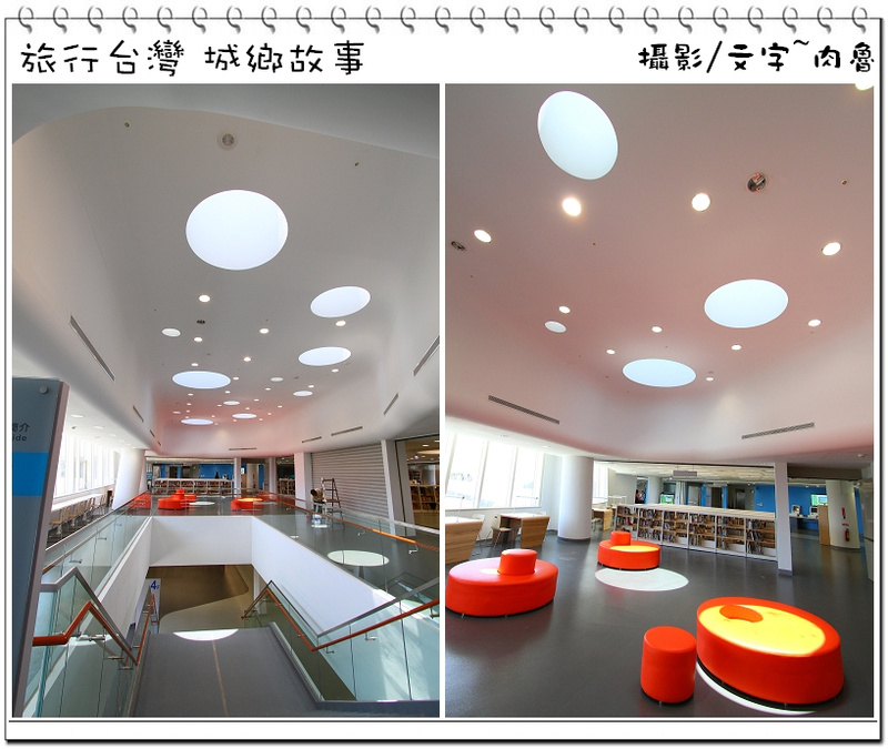 ▲猶如諾亞方舟的龐然大物,時尚川動的國立台中圖書館新館,有種向山遊客中心的似曾相識。outside-in設計把都市綠園道綠意悄然映入館內,館內設施顛覆舊有刻板印象,坐在舒適沙發包廂看DVD,蜂巢菱形書架像極書局,漫步雲端頂樓開著透明圓窗,如一朵一朵浮雲飄逸,兒童互動的繪本世界,坐在落地窗高挑桌椅上,看書上網欣賞市區即景,黃昏時刻夕陽餘暉灑落,那浪漫情景可是行家才知,如科幻片裡的外星戰艦,來圖書館感受藝術氣息吧。