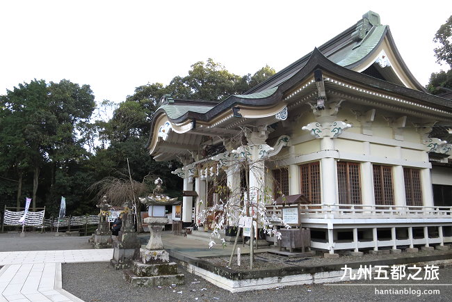 大家有沒有發現,武雄神社和一般的神社很不一樣,外觀是白色的,據說是以前神社遭遇災難,後來災難過去時,有隻白鳥停在神社上,大家覺得是白鳥幫助度過難關,因此將神社漆上白色做為紀念。