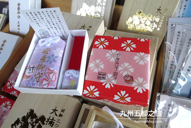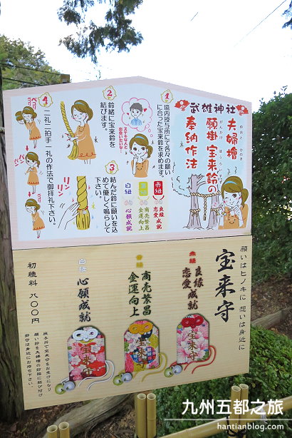 可以到武雄神社買御守,有附一個御守加一個鈴鐺,將鈴鐺綁在夫婦樹上,祈求感情和睦。