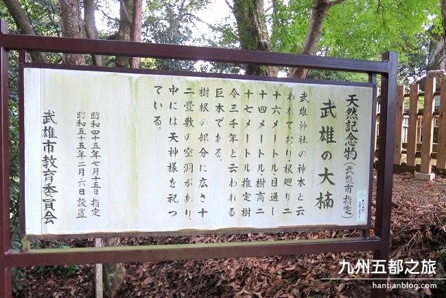 武雄神社這顆大楠樹,原本是可以進去的,聽說龍貓中創作的靈感來源就是這顆大楠樹,因為他中間有洞是可以進去的。