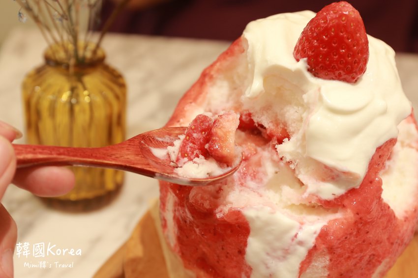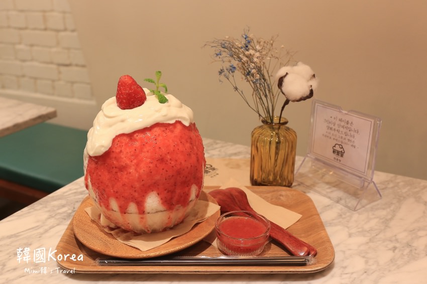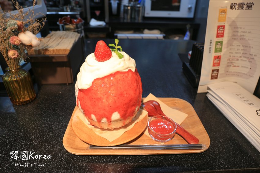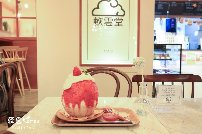 而且挖開刨冰,裡面還藏著很多新鮮草莓唷!每一口都很好吃,超喜歡!喜歡吃冰+拍照的話,來韓國旅遊時不妨找間軟雲堂試試看吧 ?