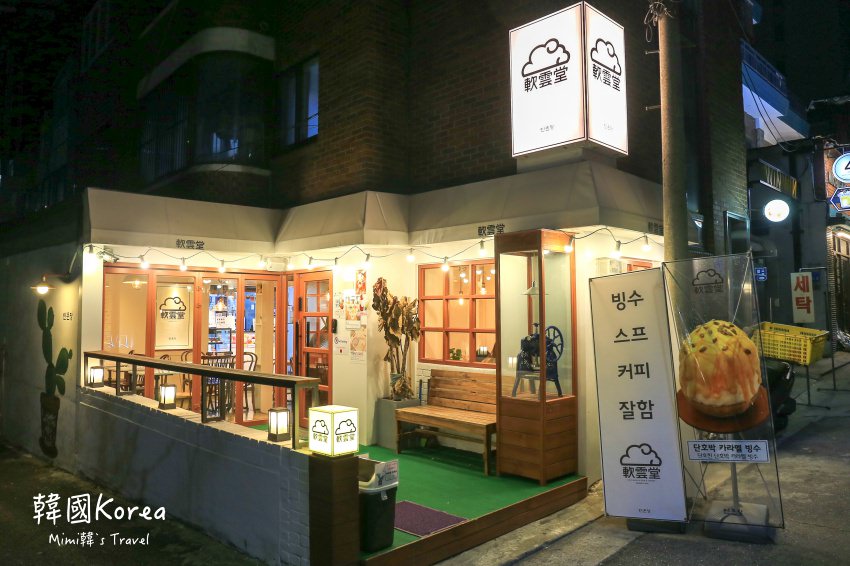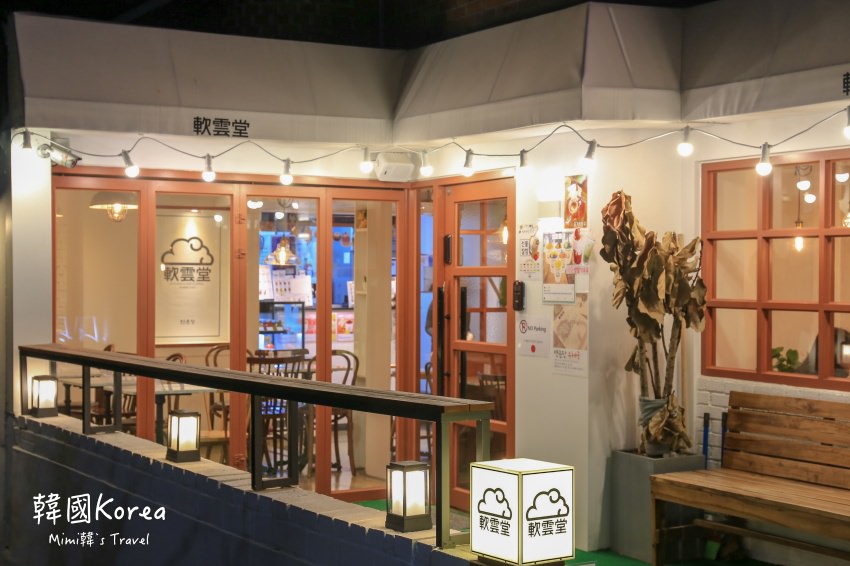 軟雲堂弘大店的外觀是間看起來可愛的小洋房,在夜晚散發出溫暖的味道,不過位置並不在熱鬧的街道上,週邊感覺蠻安靜,建議可以利用Google Map或是韓巢地圖來導航,就可以順利抵達啦!(詳細韓巢地圖請點)