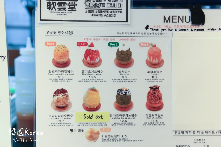 吃冰吃冰!韓國的冰店實在是很有創意捏!像是這間連名字都很可愛的軟雲堂,一份份亮眼吸睛的刨冰,可以說瞬間就在IG上爆紅,目前在首爾的弘大、東大門、釜山西面,就連大邱等地方都已有軟雲堂分店,隨著季節變化的各種刨冰超吸引人想拍它吃它,我們既然來到首爾自由行怎麼能錯過呢?來去軟雲堂弘大店瞧瞧吧~