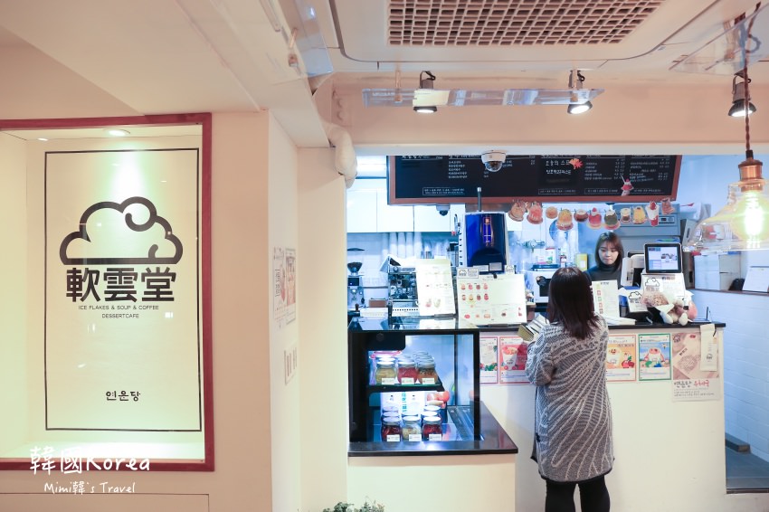 和大多數韓國美食甜點咖啡廳一樣,進來之後先自行找位置坐下,然後去櫃台點餐即可。店裡佈置的讓人感覺舒服,整體帶點雲朵輕柔的氣息,似乎也是蠻符合軟雲堂這有點俏皮可愛的店名吼!