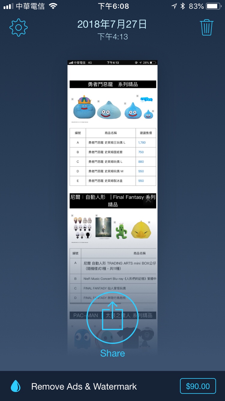 這款操作簡單的 App 還是有缺點,它無法選取圖片,而是自動生成,所以截圖時必須要照順序拍,否則製作時會發生順序錯亂的狀況唷。另外用戶也可以選擇無廣告、浮水印的付費版本。