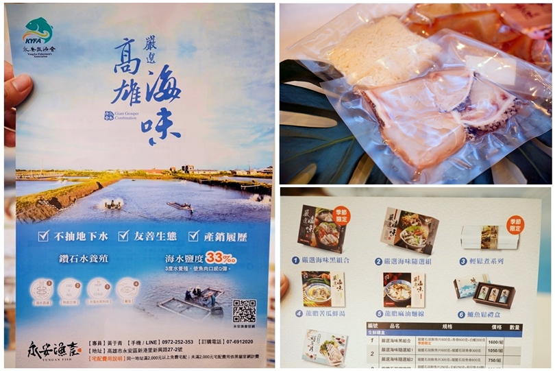▼裡頭有青斑500g/尾*1、青斑魚片250g/片*1、龍膽石斑清肉片300g/片*1、龍膽石斑清肉塊350g/包*1、龍膽石斑頭骨肉300g/包*2、午仔魚蝴蝶切250g/尾*1,不僅一次可以享用到三種不同魚種,而且也獲得多項認證與肯定,大家都可以安心享用!
