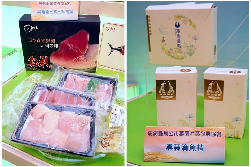▼另外還有魚有王企業推出的黑鮪魚日式三眛禮盒、澎湖馬公菜園社區發展協會的黑蒜滴魚精,都是營養滿分、送禮大方好看的產品!尤其那生魚片厚道一個不可思議,看得我們口水都要流下來啦!
