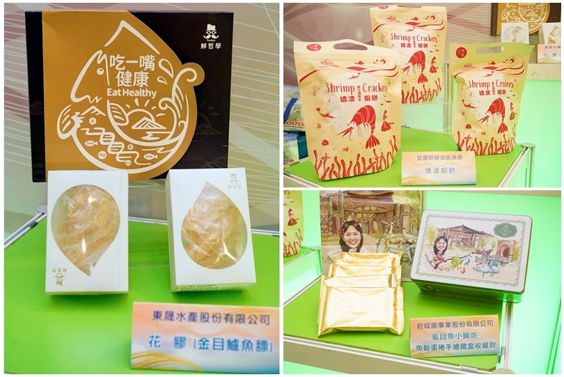 ▼像是東晟水產的花膠(金目鱸魚膘)、宜蘭縣蘇澳區漁會的嬌澳蝦餅、府城館事業的虱目魚小鋼炮-魚鬆蛋捲手繪鐵盒收藏款,就包裝上來說真的讓人眼睛一亮呢!