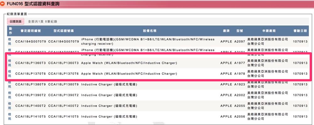 2018 Apple 新機發表會中意外成為亮點的 Apple Watch Series 4 因為加入心率監測功能(ECG)備受矚目,但此次台灣並沒有出現在首波上市國家名單之中,也讓不少朋友開始擔心是否會因為心率監測功能而無緣在台見面!但就在稍早,台灣 NCC 公佈了一長串的 Apple 產品審核名單,其中除了今天開放預購的 iPhone XS 系列,也赫然驚見代號為 A1977 / A1978 的最新 Apple Watch Series 4 !