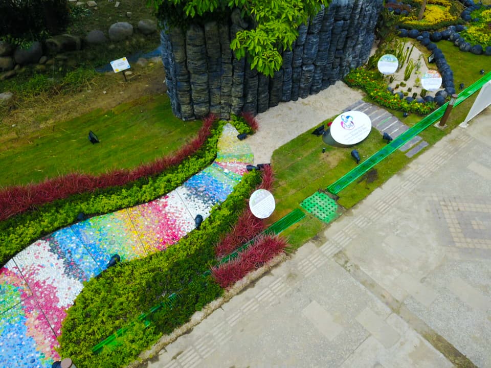 展區除了各式美麗的庭園植栽之外,也特別強調『與大自然共存、海洋保護』的觀念,所以本次所使用的創造素材,除了自然的植栽之外,也利用海邊數量最多的保麗龍,浮球以及保特瓶蓋等,以結合淨灘活動所收集海漂物為素材的概念,希望一方面希望能夠讓更多人了解環保的重要,讓更多人願意一起守護我們的海洋。