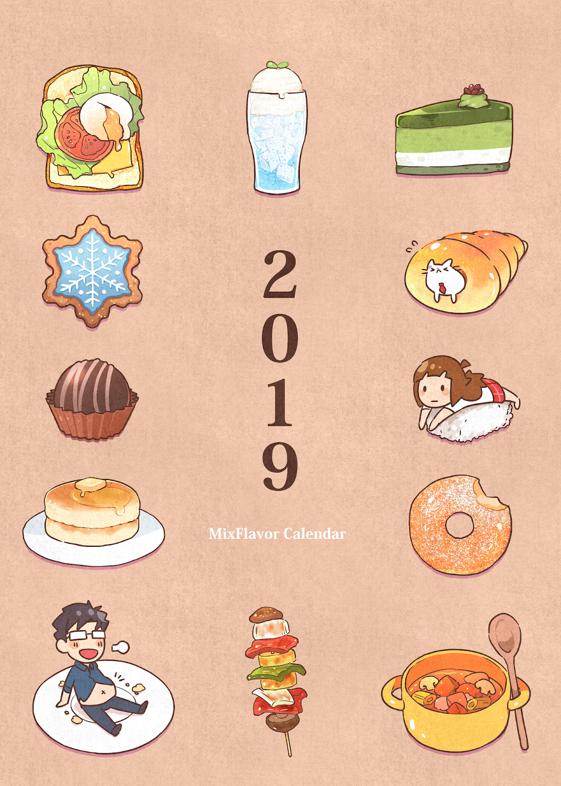 綜合口味在2019年第一次出桌曆了!也可以說是一本充滿可愛誘惑的食物插畫集 :D