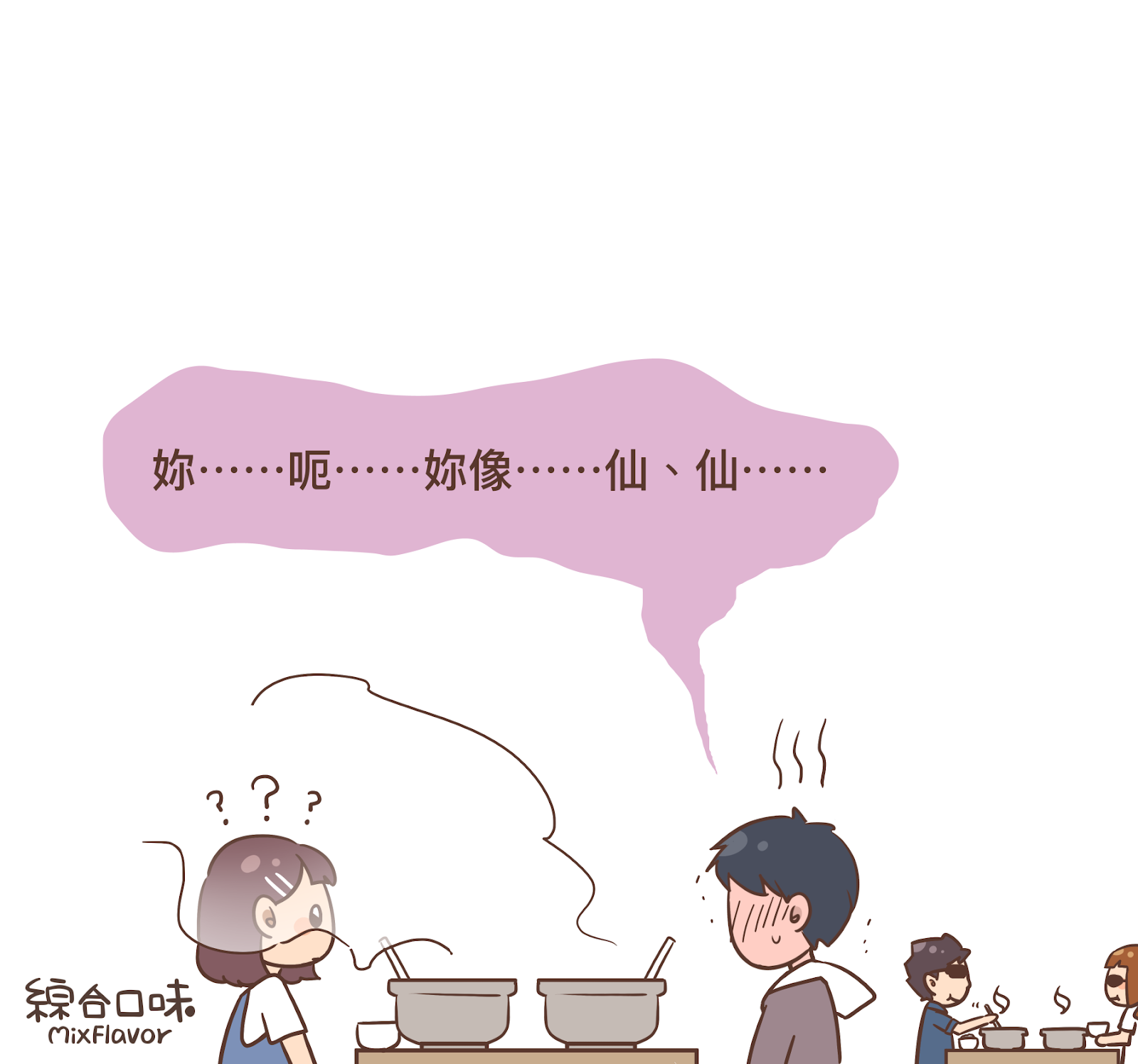 自帶煙霧背景就是這麼回事!完全不需乾冰就能製造浪漫效果XDD這則情話非常實用喔!不論是吃烤肉還是吃火鍋都會遇到不長眼的煙喜歡往臉上飄,這時就直接說出:「哇喔⋯⋯被煙霧繚繞的妳簡直像仙女一樣美」即可順利撩動女孩子的心(?但是⋯⋯
