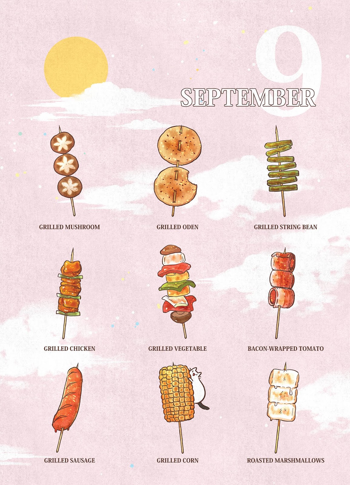 從以前就夢想著可以畫滿滿的美食插圖,果然時間是擠出來的,經過了一個月的晚睡早起,這本月曆終於誕生!(魔法少女無法積稿都是畫這個害的)(咦?)