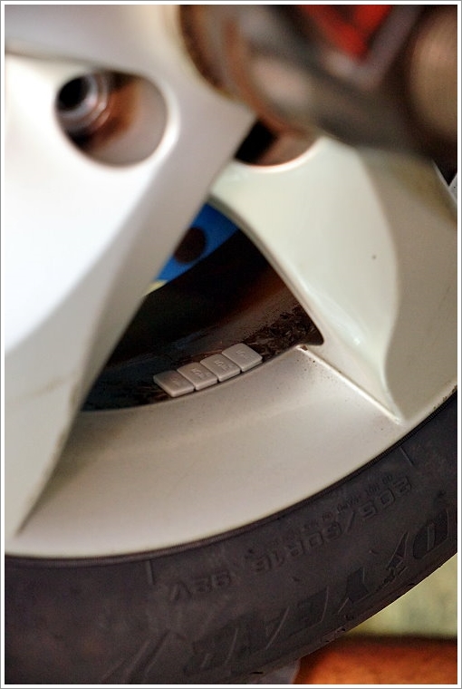▼輪胎裝上去後經由模擬滾動直接測出不平衡點,最後結果會告知需要加鉛塊平衡的地方,原來是這樣啊!