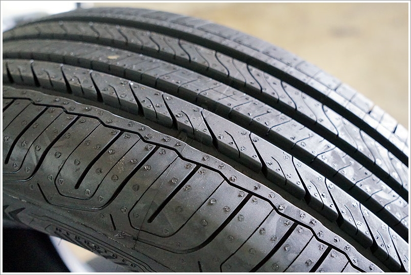 ▼老闆看了我之前用的輪胎與這條相比,提到光是看胎肩較細窄的溝槽、胎塊節距數量增加,開起來就會比之前安靜,尤其是高速公路上輪拱傳上來的噪音就會減少許多。